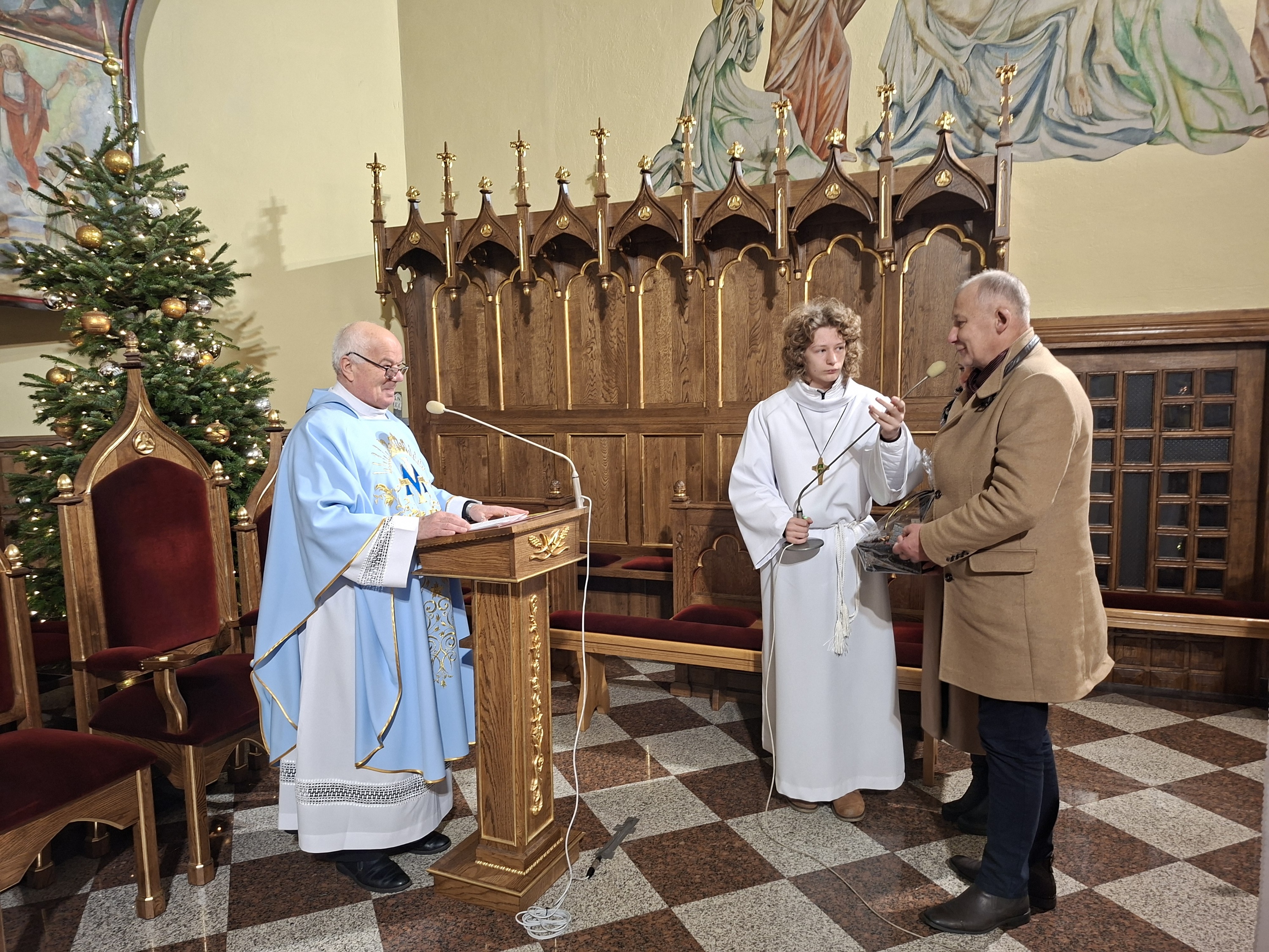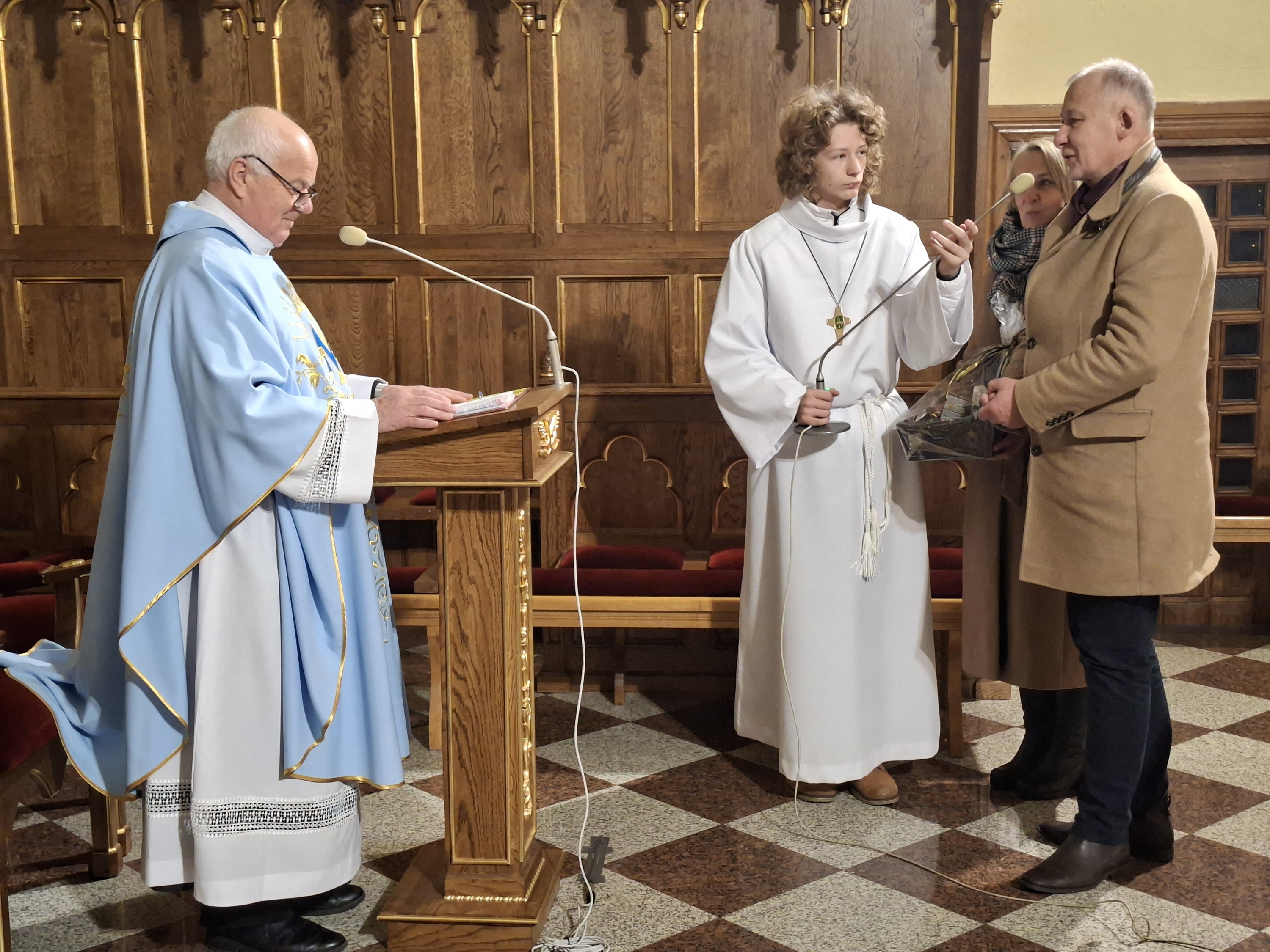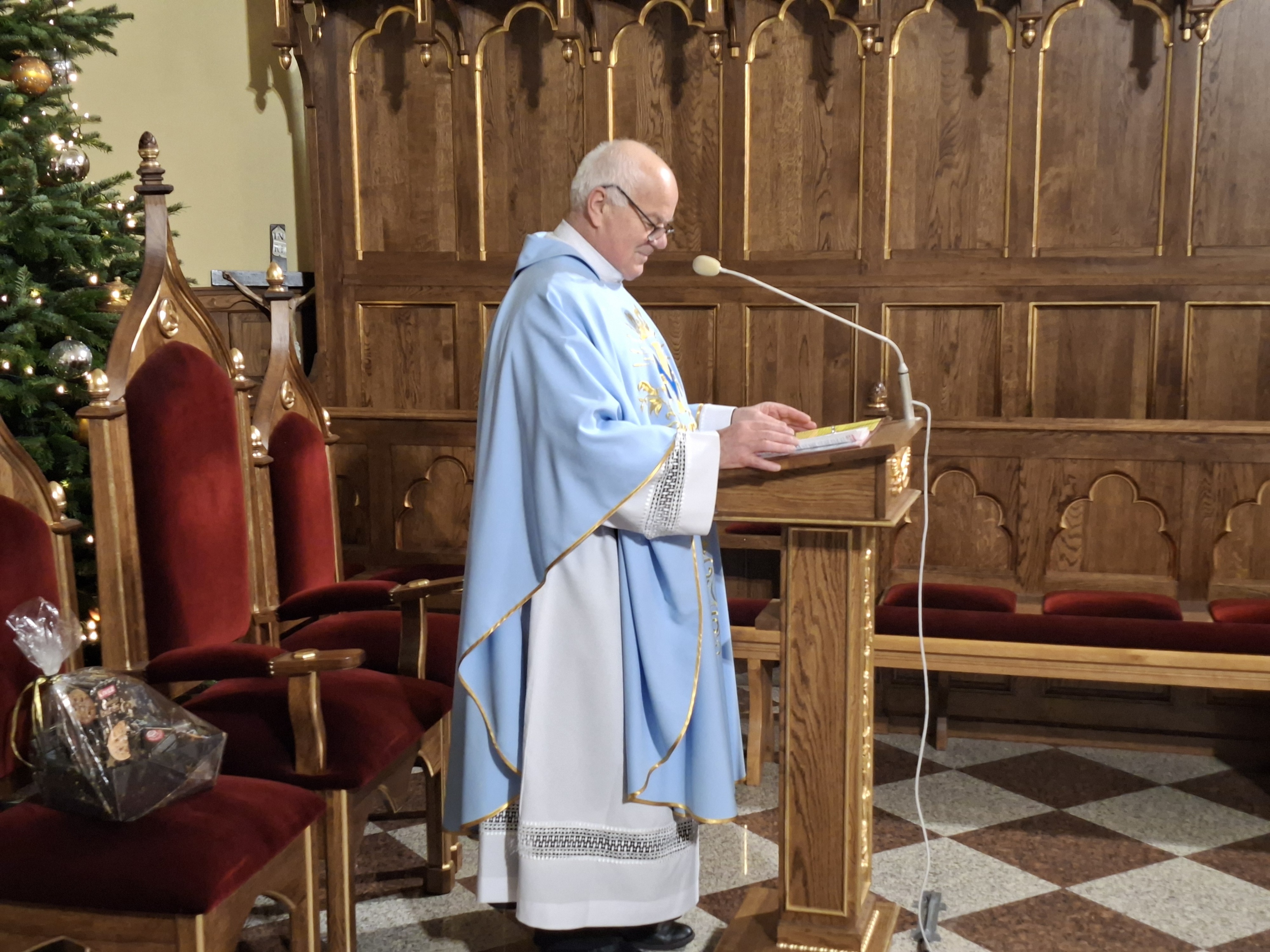 Po zakończeniu Mszy Świętej wspólnota parafialna skierowała do Księdza Kanonika serdeczne życzenia. Ks. Mieczysław, który 1 stycznia obchodzi swoje imieniny oraz urodziny, przyjął wyrazy wdzięczności i modlitewnej pamięci jako znak szacunku oraz uznania dla jego kapłańskiej posługi.