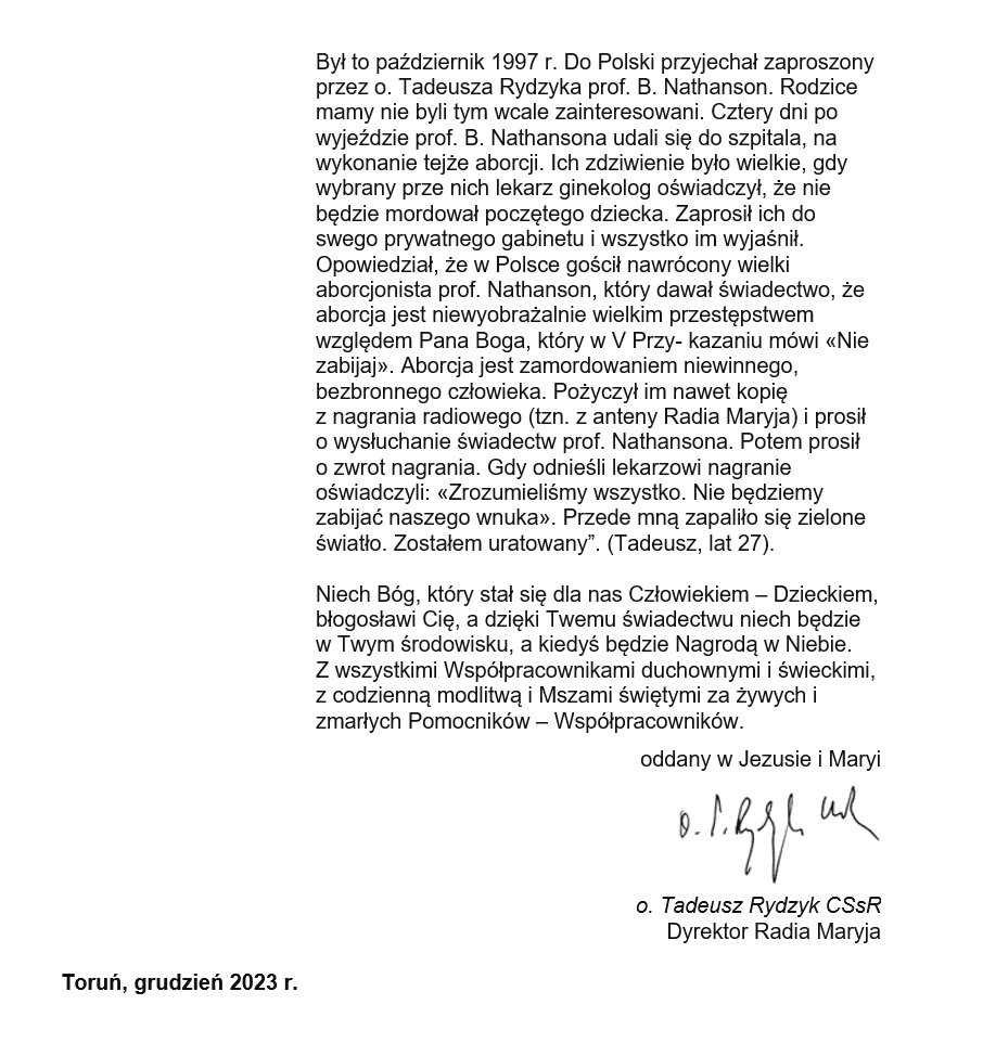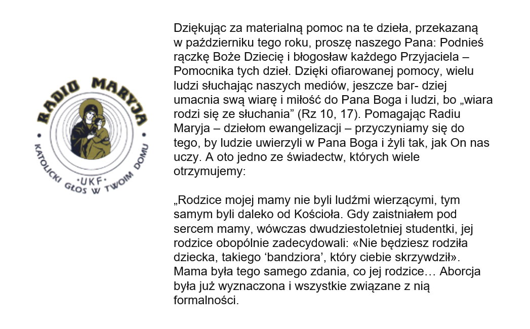 PODZIĘKOWANIE OD RADIA MARYJA STYCZEŃ 2024