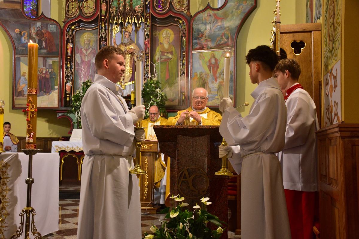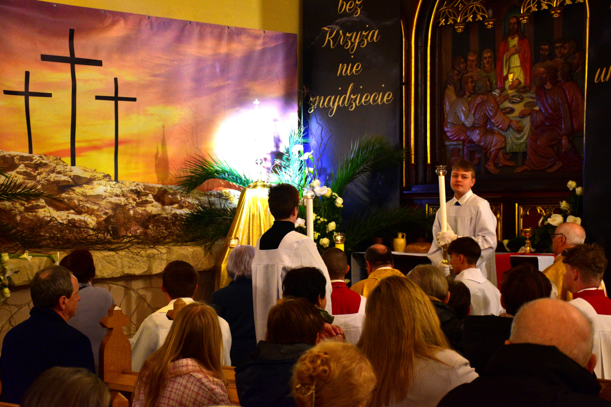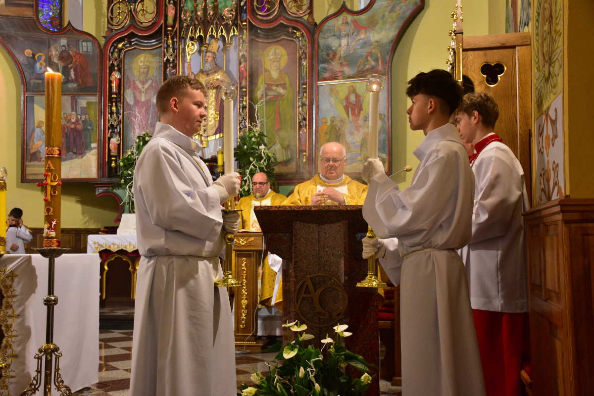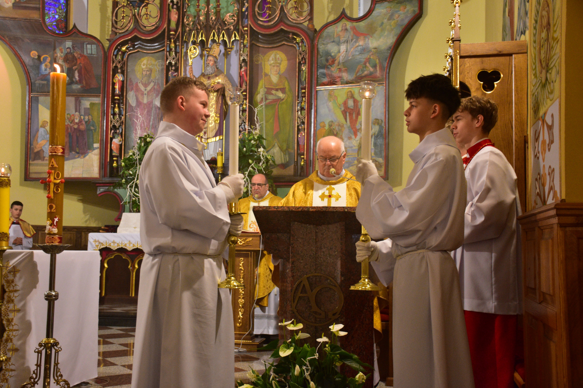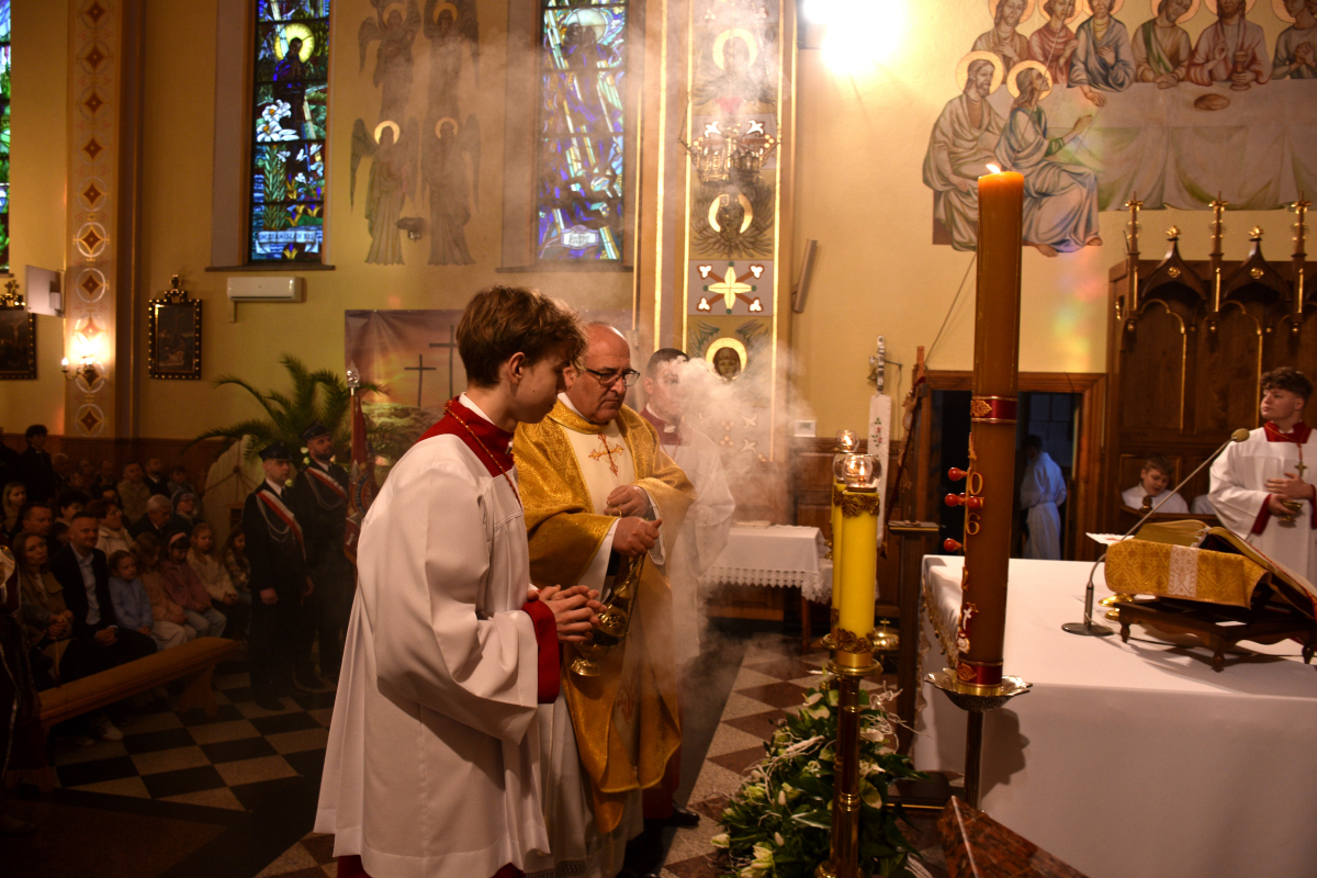 Uroczysta celebracja zgromadziła licznych parafian, którzy wspólnie przeżywali tę najważniejszą tajemnicę naszej wiary, niosąc w sercach radość i nadzieję płynącą ze Zmartwychwstania Chrystusa.