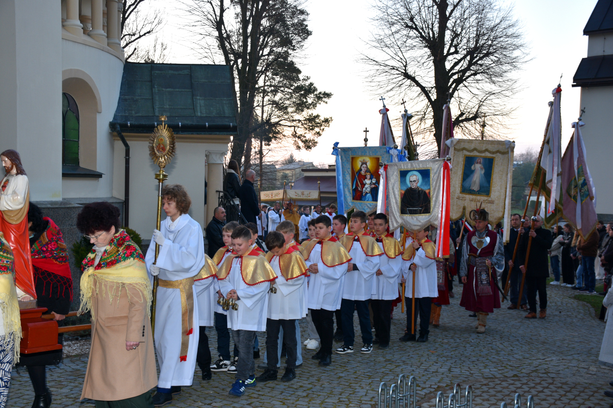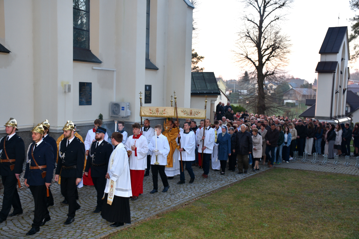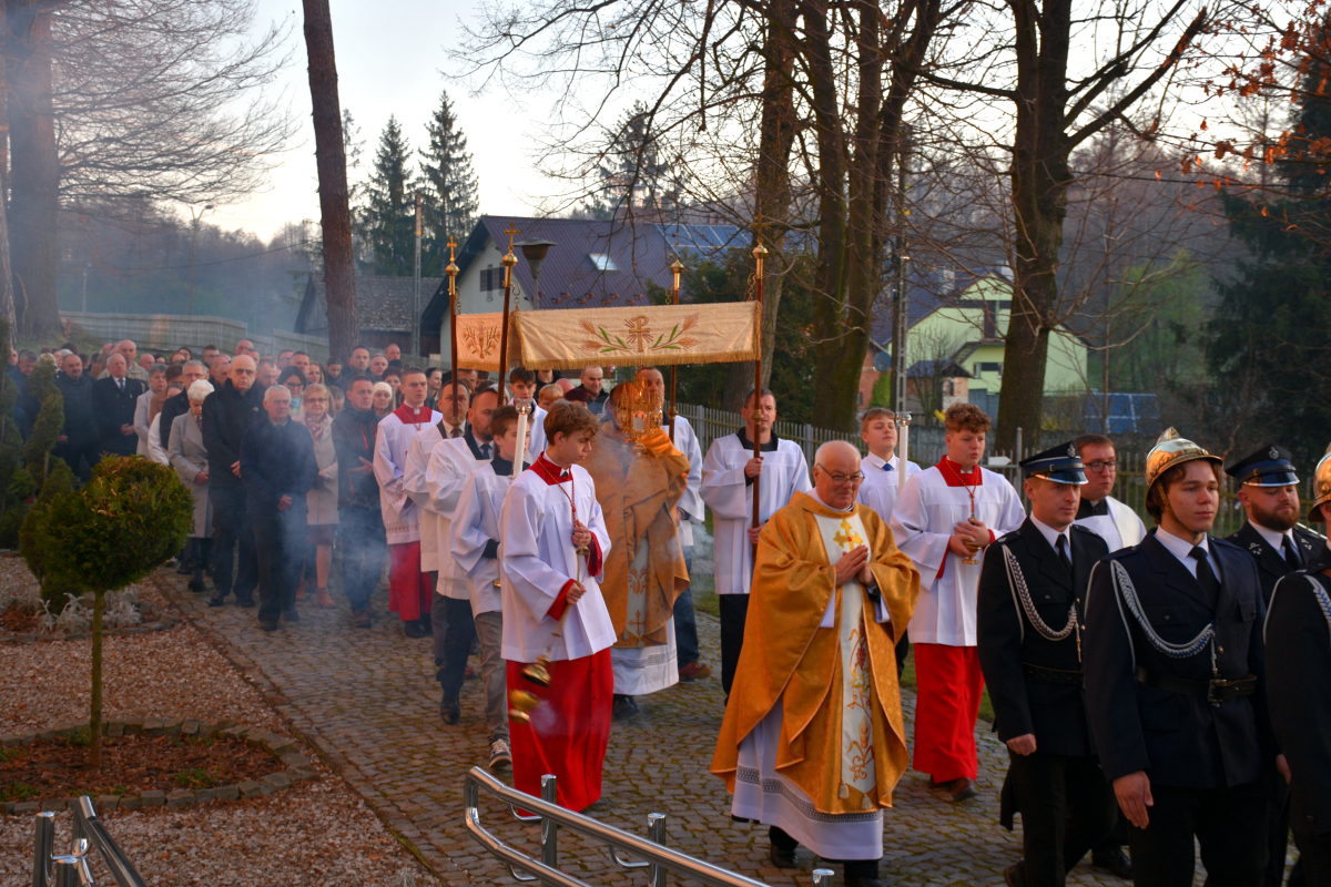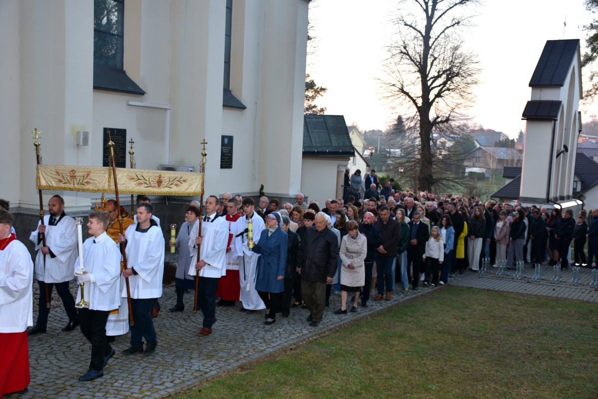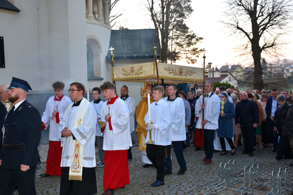 Przed rozpoczęciem Eucharystii odbyła się procesja rezurekcyjna, podczas której wierni, idąc za Najświętszym Sakramentem, z radością obwieszczali światu prawdę o Zmartwychwstaniu Pana.