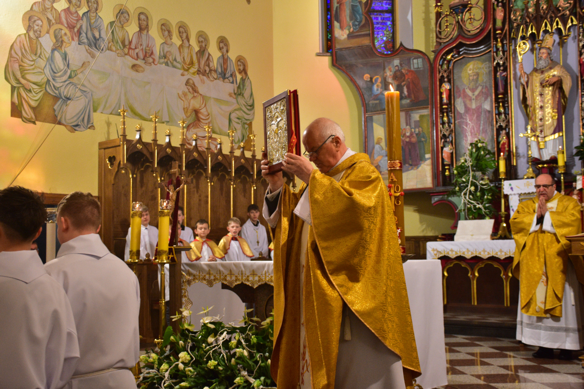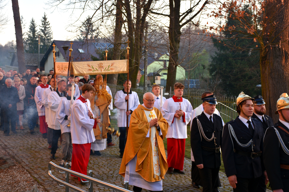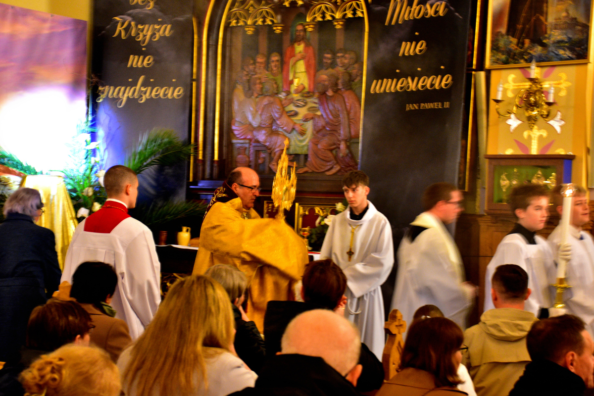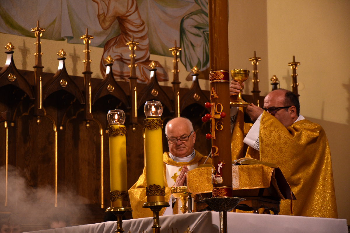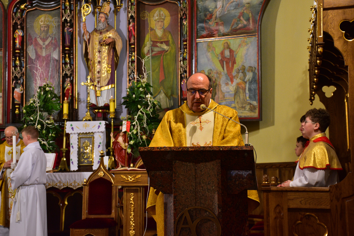 Przed rozpoczęciem Eucharystii odbyła się procesja rezurekcyjna, podczas której wierni, idąc za Najświętszym Sakramentem, z radością obwieszczali światu prawdę o Zmartwychwstaniu Pana.