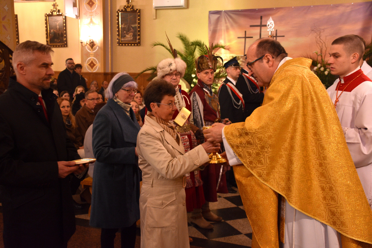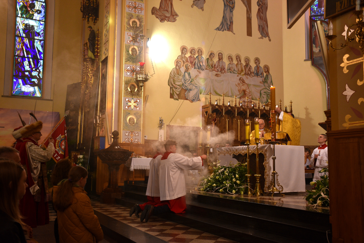 Liturgii przewodniczył Ksiądz Proboszcz Roman Słota, natomiast Mszę Świętą koncelebrował Ksiądz Kanonik Mieczysław Bizior. O godny i sprawny przebieg liturgii troszczył się Ksiądz Wikariusz Michał Zebzda.