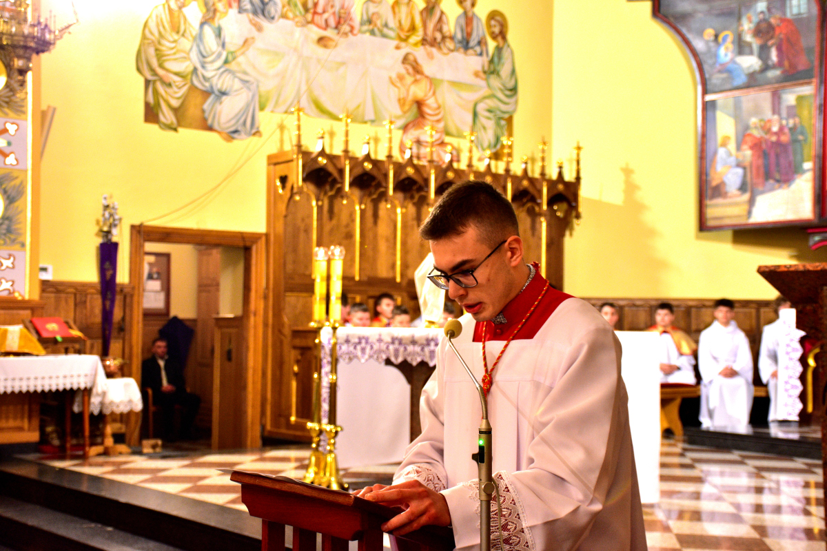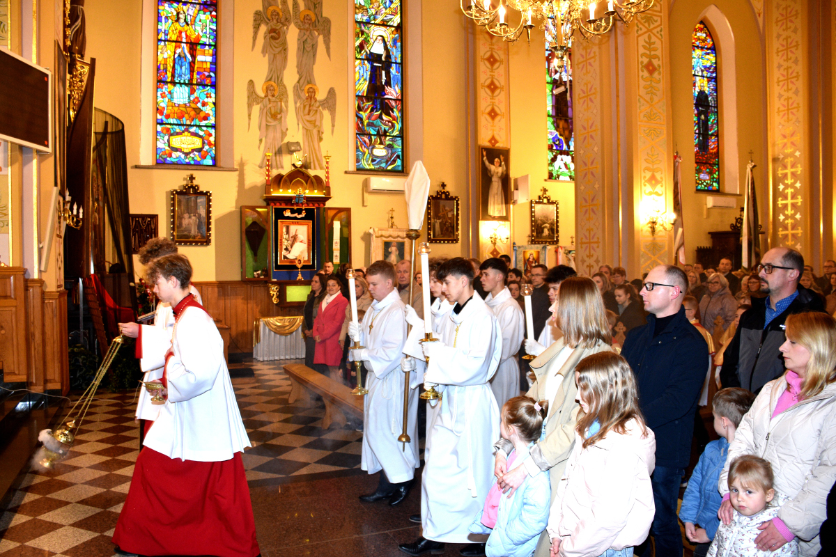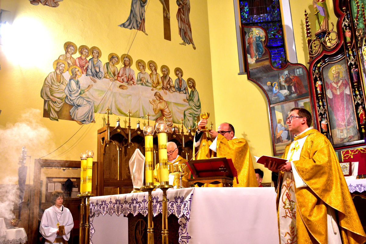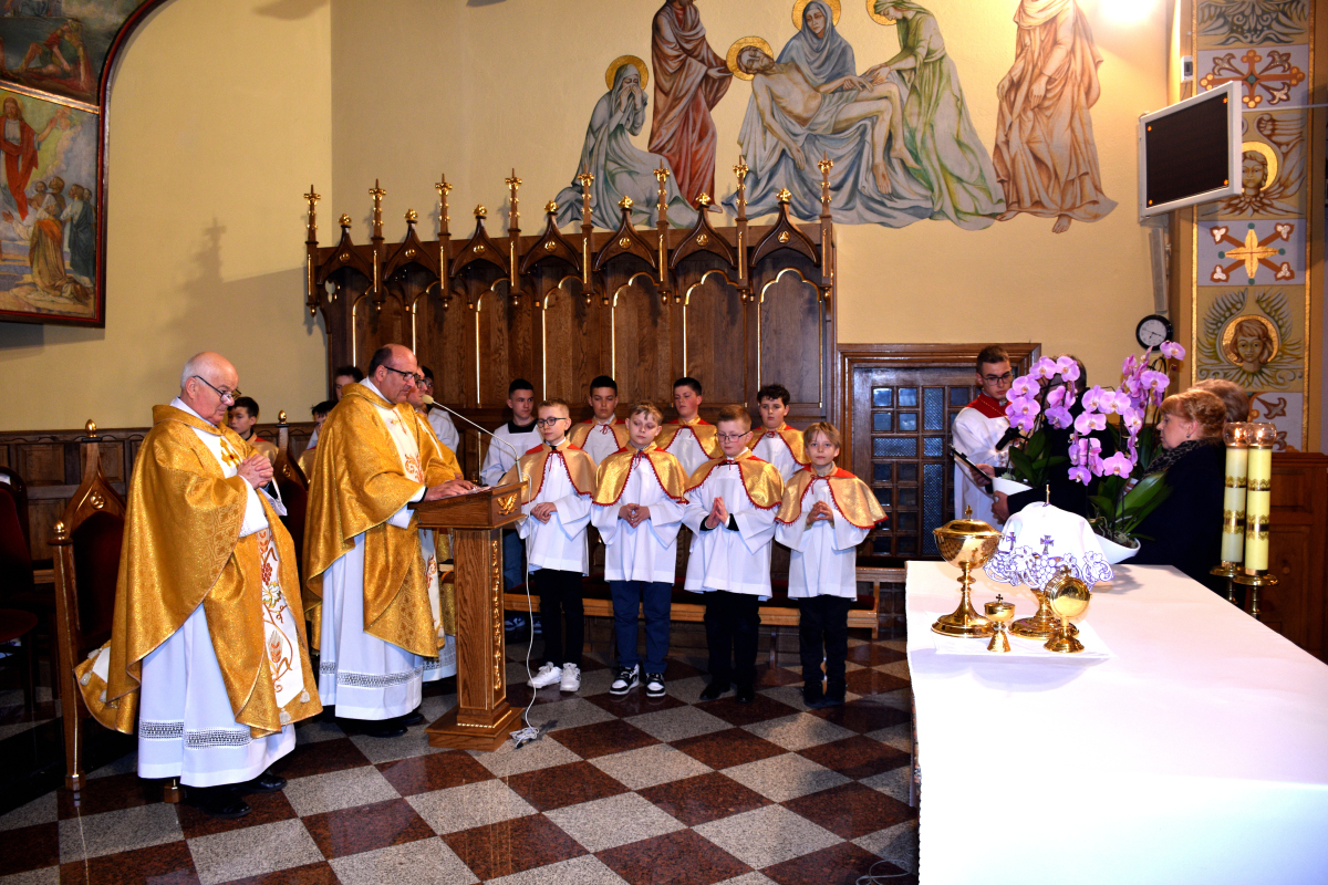 W Wielki Czwartek w naszej parafii została odprawiona uroczysta Msza Święta koncelebrowana, upamiętniająca ustanowienie Eucharystii oraz sakramentu kapłaństwa. Liturgii przewodniczył Ksiądz Proboszcz Roman Słota, a w koncelebrze uczestniczyli Ksiądz Wikariusz Michał Zebzda oraz Ksiądz Kanonik Mieczysław Bizior.