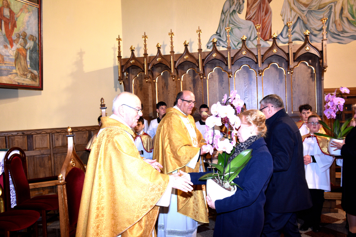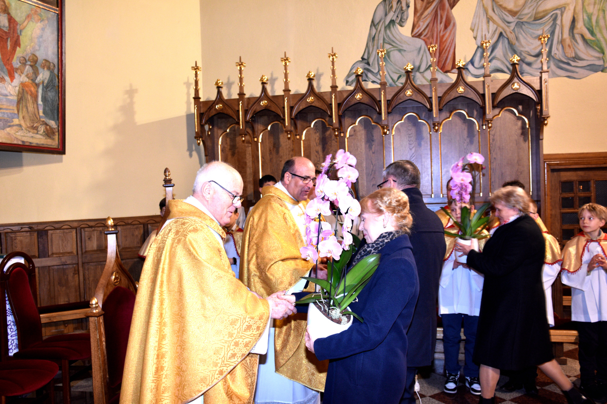 Po zakończeniu Mszy Świętej przedstawiciele parafian złożyli kapłanom serdeczne życzenia, dziękując za ich posługę duszpasterską i codzienną obecność w życiu wspólnoty.