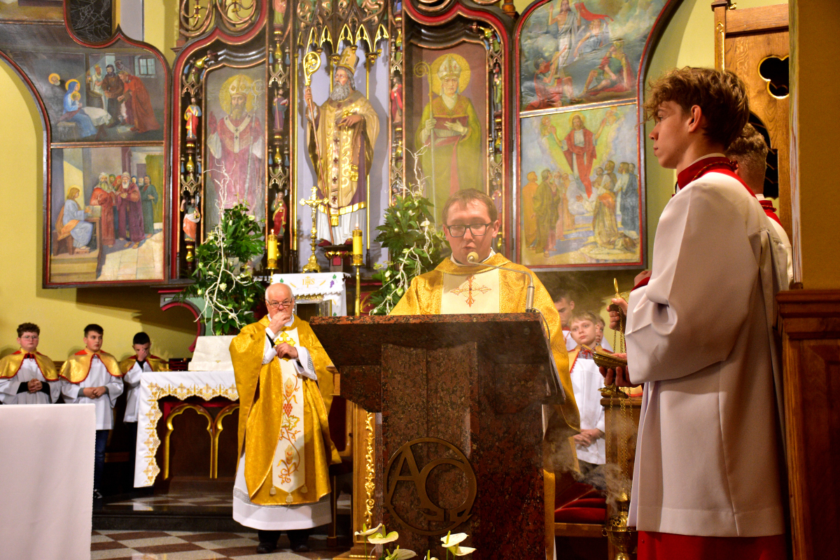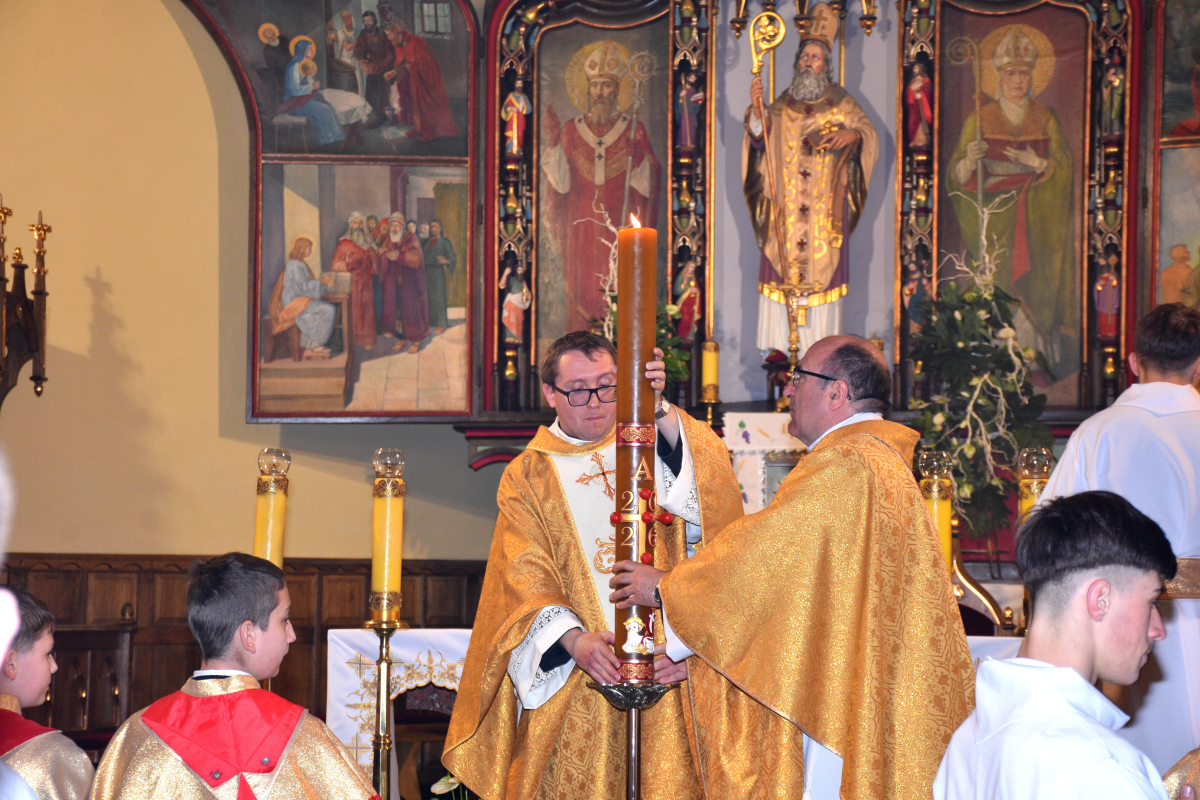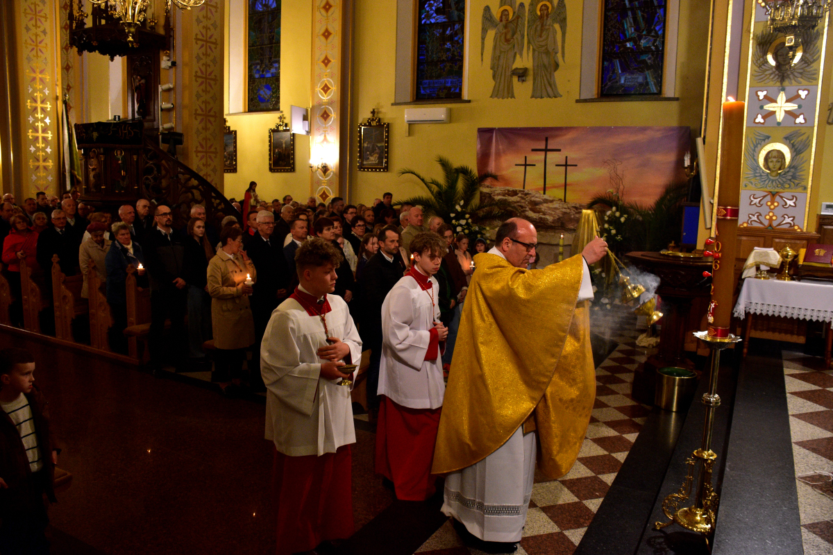 Uroczystej Wigilii Paschalnej w naszej parafii przewodniczył ks. wikariusz Michał Zebzda. W koncelebrze uczestniczyli ks. proboszcz Roman Słota oraz ks. kanonik Mieczysław Bizior.