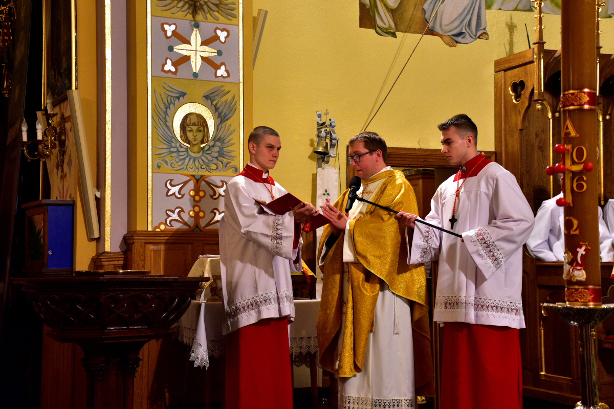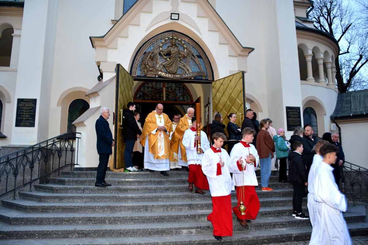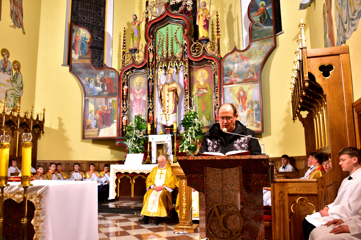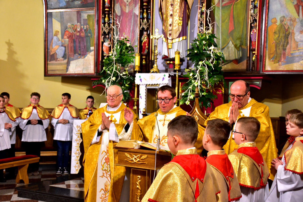 Uroczystej Wigilii Paschalnej w naszej parafii przewodniczył ks. wikariusz Michał Zebzda. W koncelebrze uczestniczyli ks. proboszcz Roman Słota oraz ks. kanonik Mieczysław Bizior.