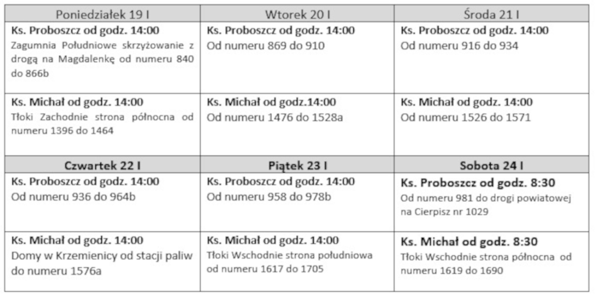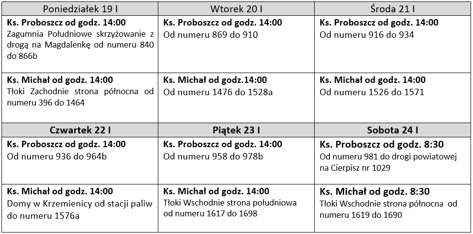 W tym tygodniu kontynuujemy wizytę duszpasterską w następującym porządku: